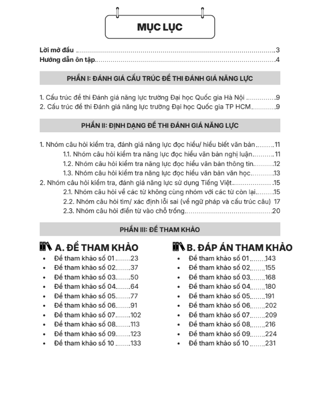 PHẦN III: ĐỀ THAM KHẢO VÀ ĐỀ TỰ LUYỆN 10 đề tham khảo có đáp án và giải thích cụ thể 5 đề tự luyện có đáp án để học sinh tự kiểm tra năng lực Chia rõ theo cấu trúc minh họa của ĐHQGHN và ĐHQG TP.HCM